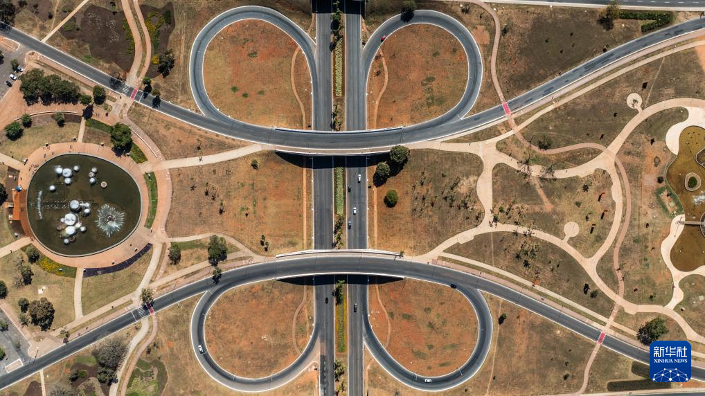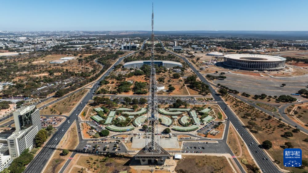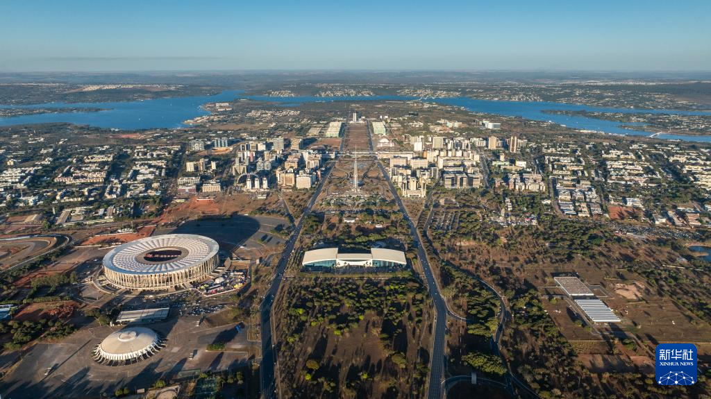这是2024年7月14日在巴西首都巴西利亚拍摄的城市中轴线景观(无人机照片)。