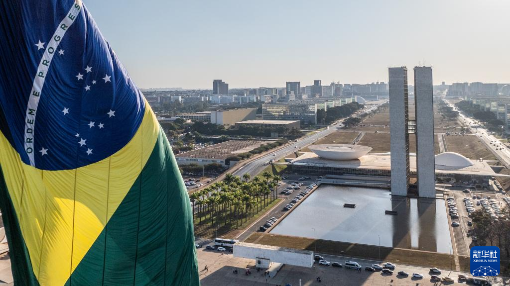 这是2024年7月16日在巴西首都巴西利亚拍摄的国会大厦(无人机照片)。