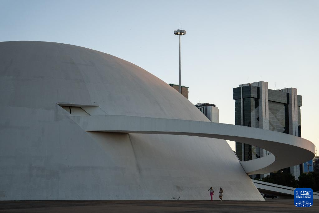 7月14日,两名游客在巴西首都巴西利亚的国家博物馆前散步。