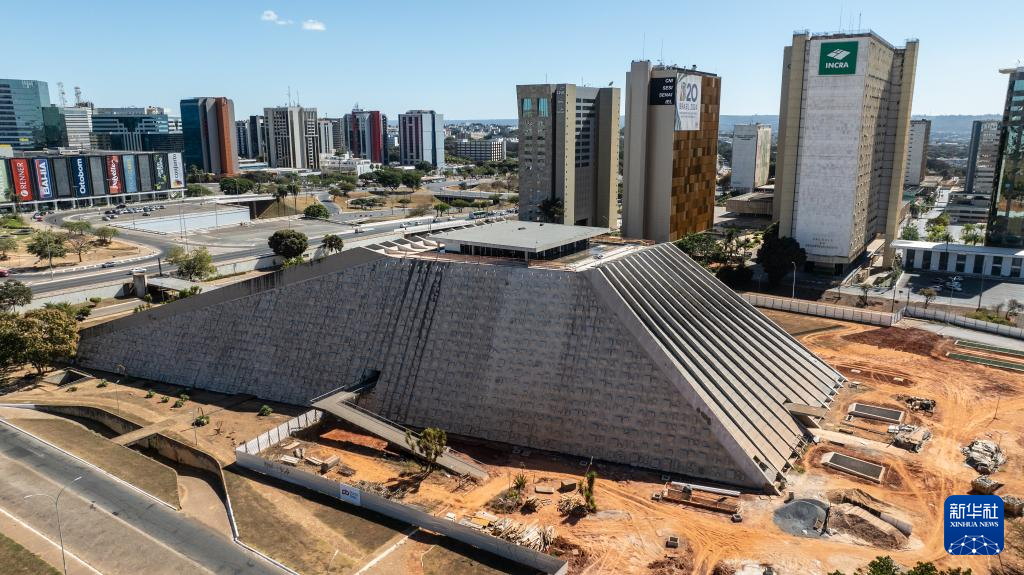 这是2024年7月14日在巴西首都巴西利亚拍摄的土著人民纪念馆(无人机照片)。