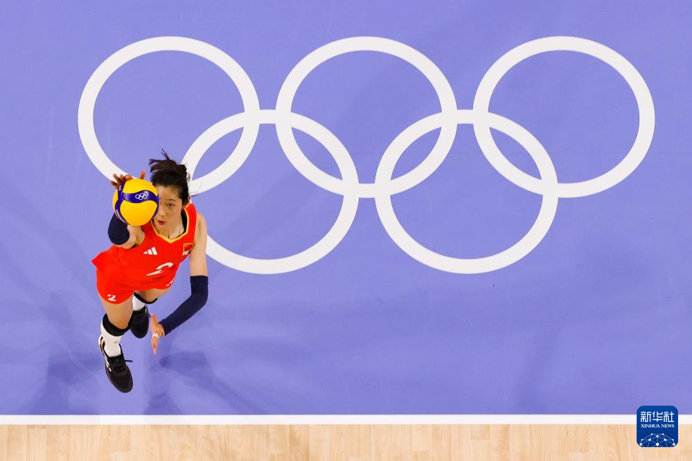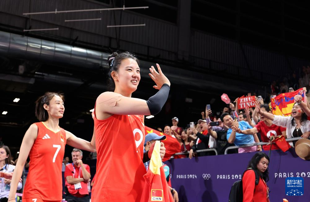 当日,在巴黎奥运会排球女子小组赛A组比赛中,中国队3比2战胜美国队。