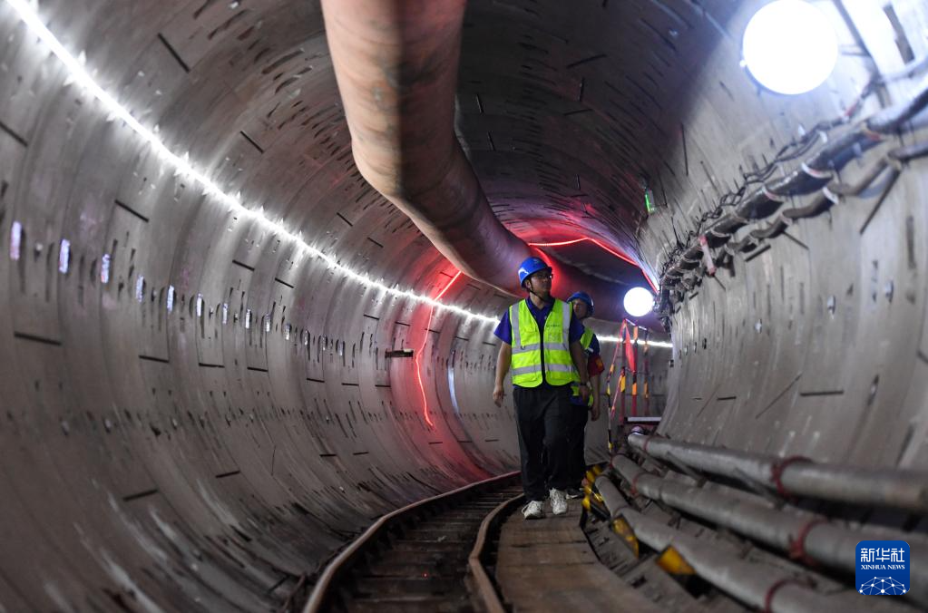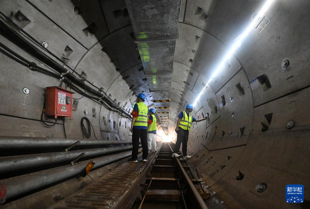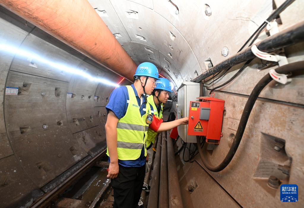 7月30日,工作人员在雨水主管隧道内检查盾构管片。