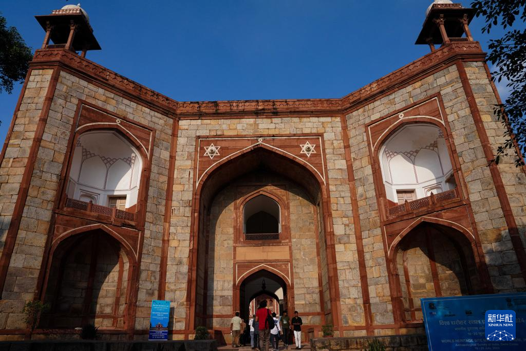 7月29日,在印度首都新德里,人们参观胡马雍陵。