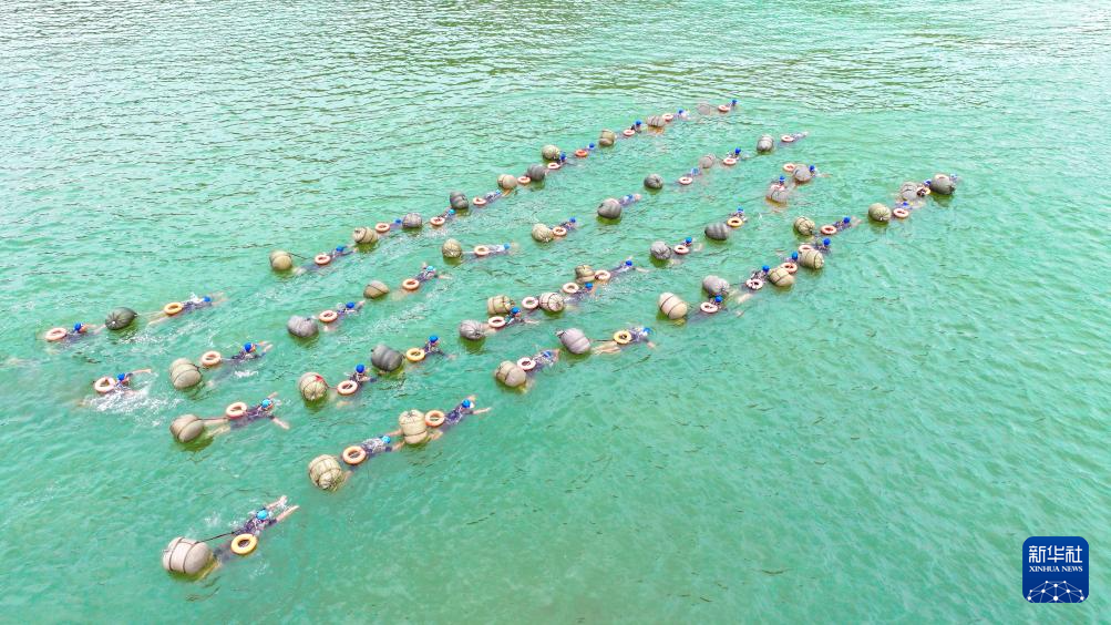 陆军第72集团军某旅组织官兵进行全装泅渡训练(无人机照片,7月30日摄)。