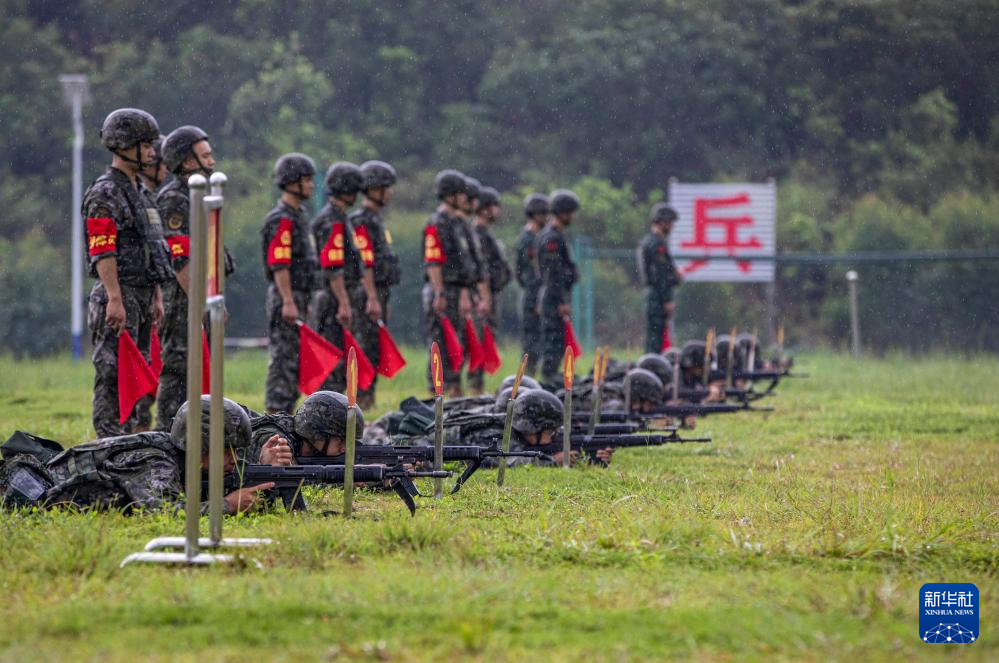 武警广西总队百色支队开展群众性练兵比武活动,官兵们进行自动步枪精度射击(7月30日摄)。