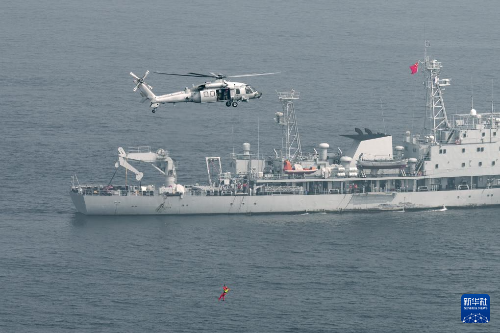 北部战区空军某部与海军某部组织海上联合搜救训练,救生员即将入水(7月30日摄)。