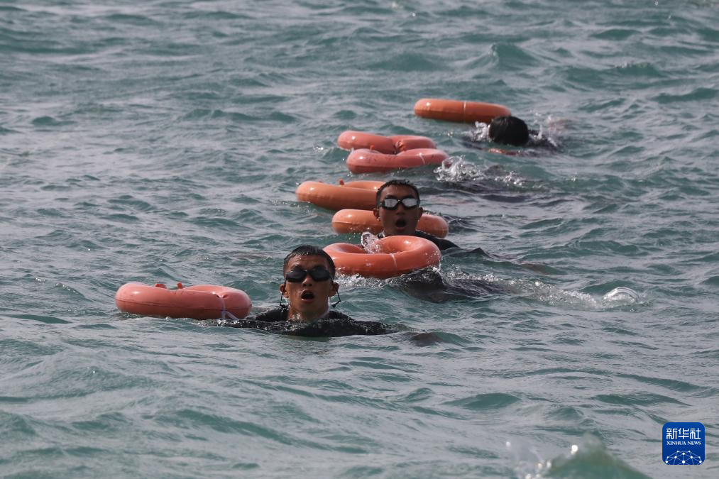 海军某部组织官兵在陌生海域展开赤臂长游训练(7月30日摄)。