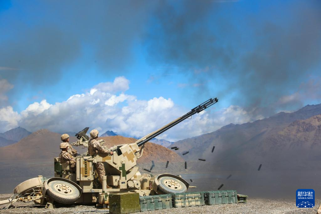 新疆军区某火力团组织防空分队进行实弹射击演练(7月31日摄)。
