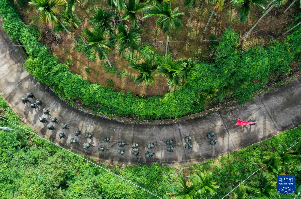 武警海南总队儋州支队组织特战队员进行负重行军训练(7月31日摄)。