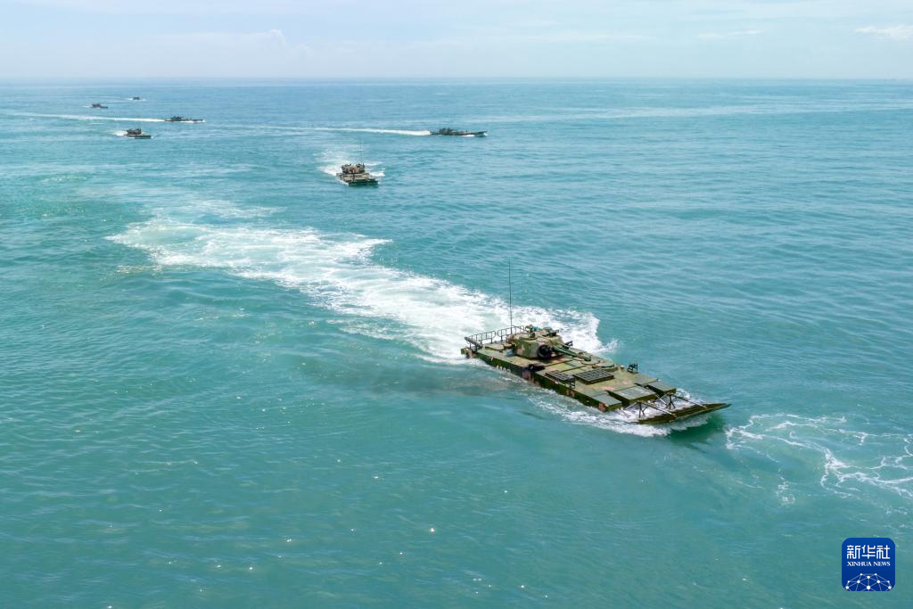 陆军第73集团军某旅两栖装甲分队进行海上驾驶训练(7月30日摄)。