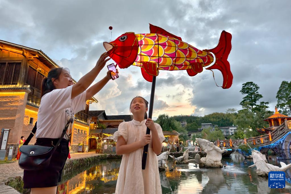 7月29日,一位小女孩在浦源村鲤鱼溪景区举起鲤鱼灯。