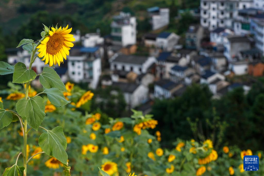 8月1日在安徽省黄山市歙县石潭古村拍摄的向日葵花。