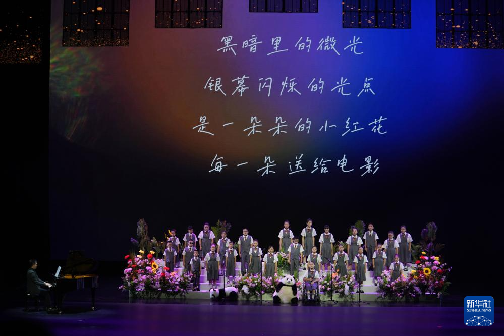 这是8月2日在第37届大众电影百花奖系列活动开幕式上拍摄的童声合唱《送你一朵小红花》。