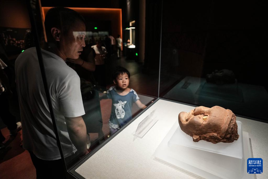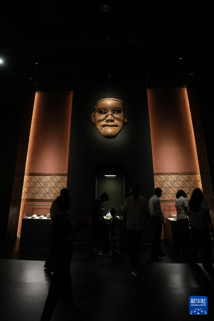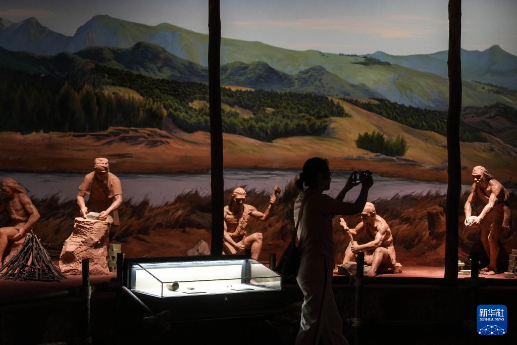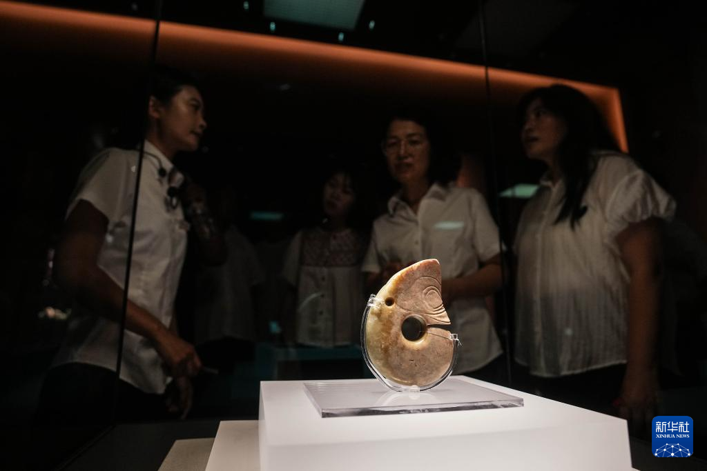 8月3日,参观者在牛河梁遗址博物馆内观展。