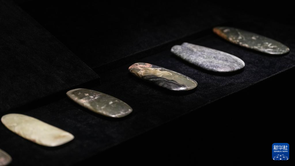 这是8月3日在牛河梁遗址博物馆拍摄的展品玉斧。