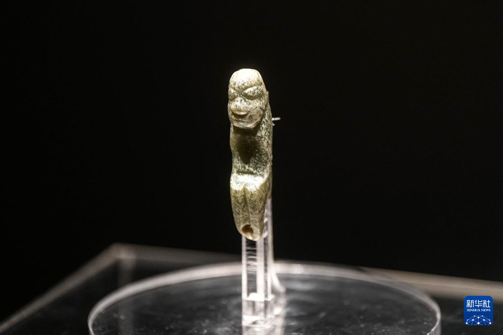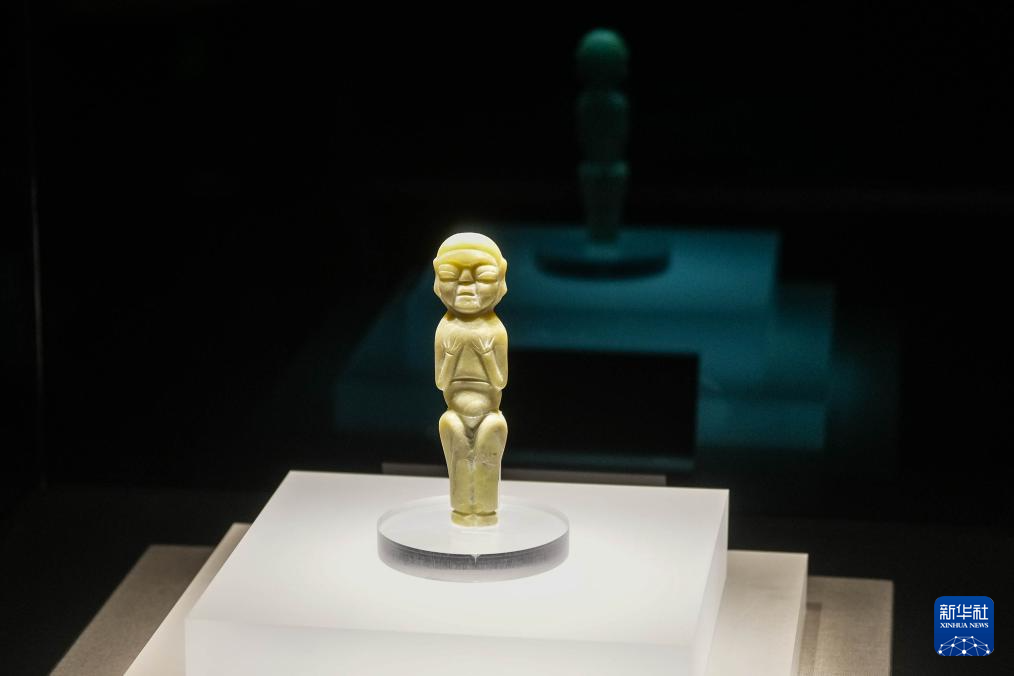 这是8月3日在牛河梁遗址博物馆拍摄的展品玉人。
