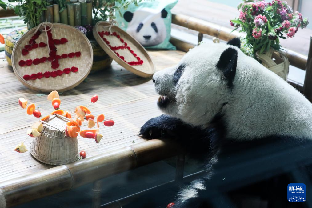 青海西宁:大熊猫“和兴”“双欣”过生日