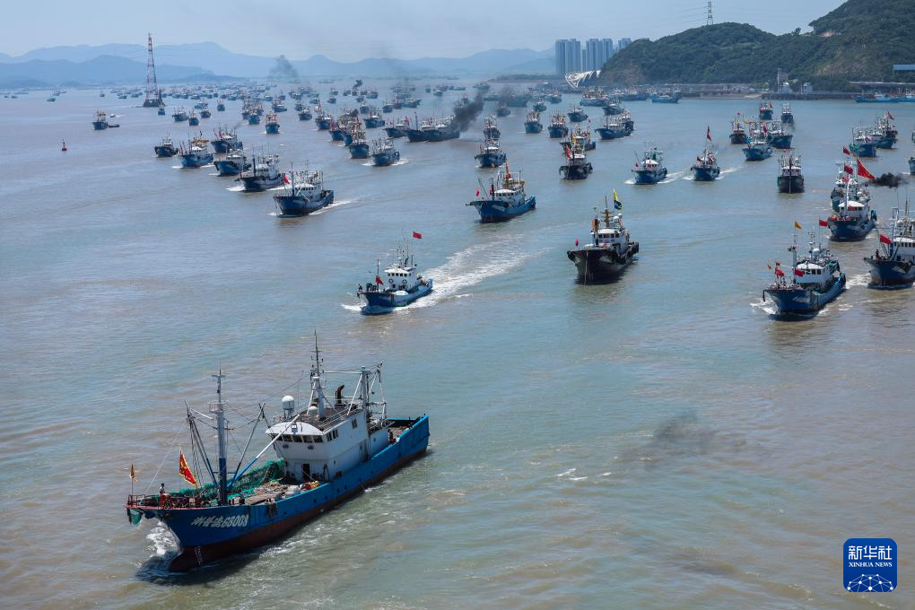 8月1日,数千艘渔船从舟山市普陀区沈家门渔港出发,前往东海海域开启捕捞作业。