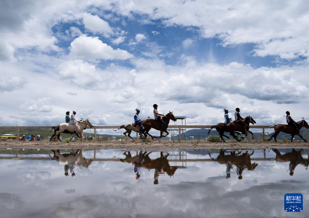 7月30日,在理塘县“八一”赛马场,选手参加中马10000米比赛。