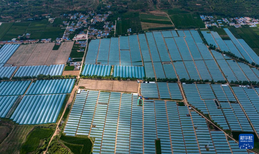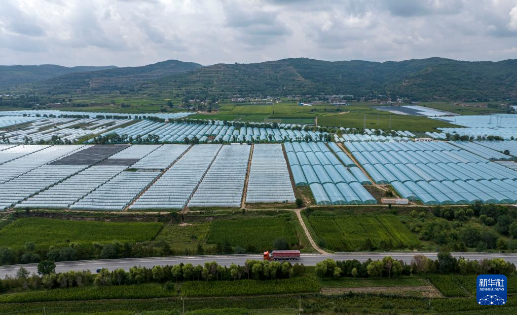 这是8月2日拍摄的宁夏固原市隆德县沙塘镇设施蔬菜高产高效示范基地(无人机照片)。