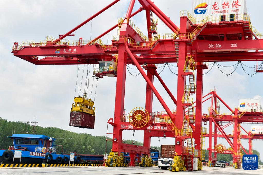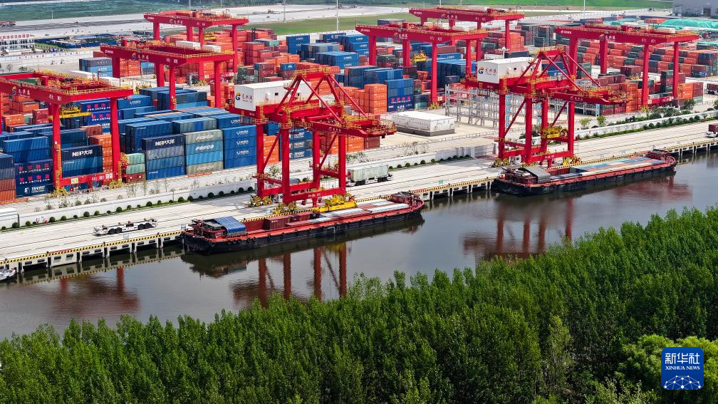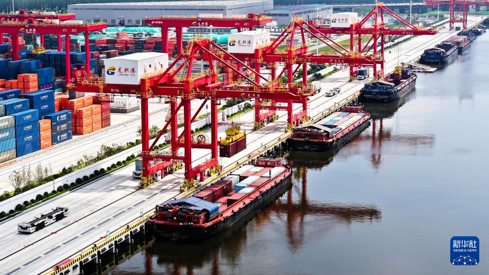 位于京杭大运河上的山东省济宁港航龙拱港,今年以来打通新(乡)兖(州)铁路和京杭大运河铁水联运节点,进一步完善港口的集疏运体系,推动铁水、公铁等联运模式发展,集装箱吞吐量持续攀升。今年前7个月,龙拱港完成集装箱吞吐量11.91万标箱,同比增长72.8%。