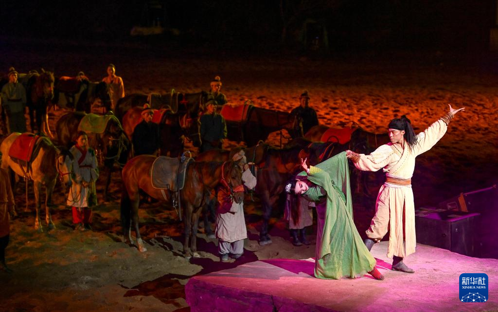 8月2日,演员在关山草原景区的实景演艺《大秦关山》上表演。