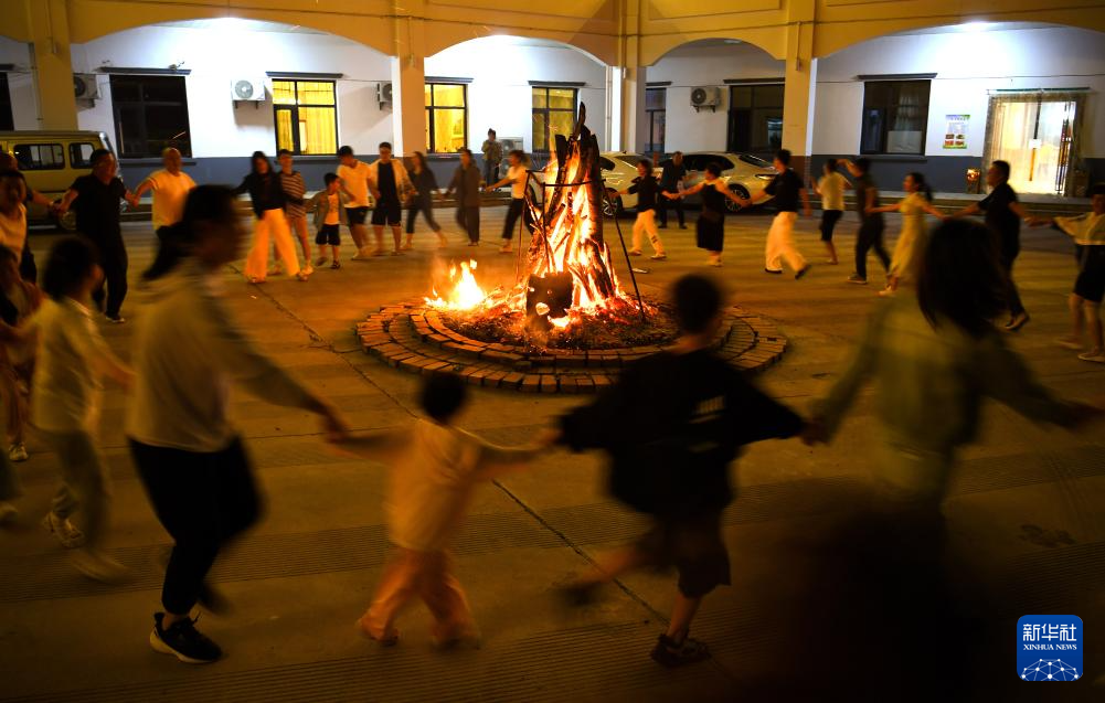 8月2日,游客在关山草原景区的篝火晚会上联欢。