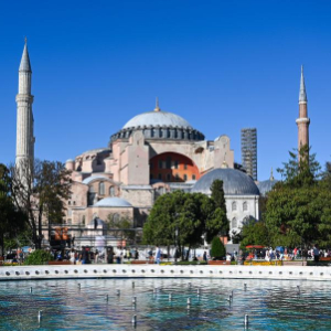 这是8月2日拍摄的土耳其伊斯坦布尔圣索菲亚大教堂。