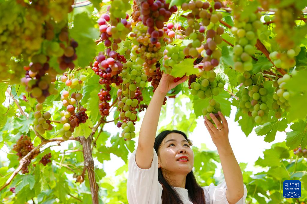 8月6日,村民在重庆市黔江区蓬东乡麻田村一个葡萄基地采摘。