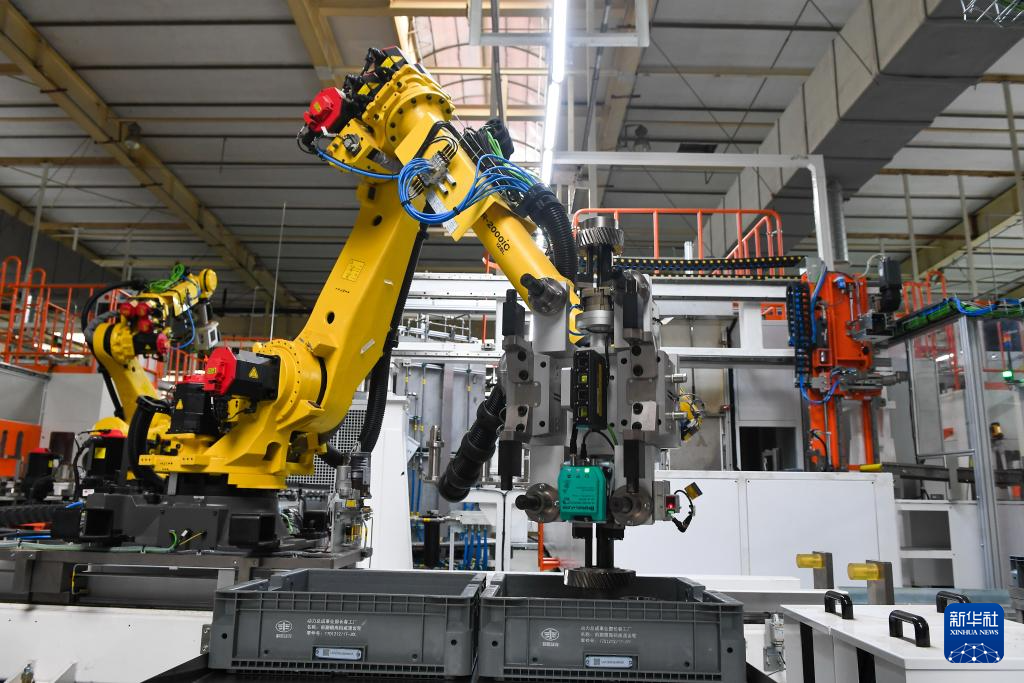 8月5日,在一汽解放动力总成事业部长春工厂集成AMT车间,机器人自动抓取零件。