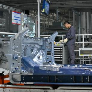 5月8日,工人在华晨宝马汽车有限公司大东工厂生产线上工作。