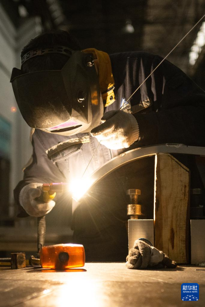 4月16日,在位于哈尔滨市的中铝集团东北轻合金有限责任公司,工人在生产厂区作业。