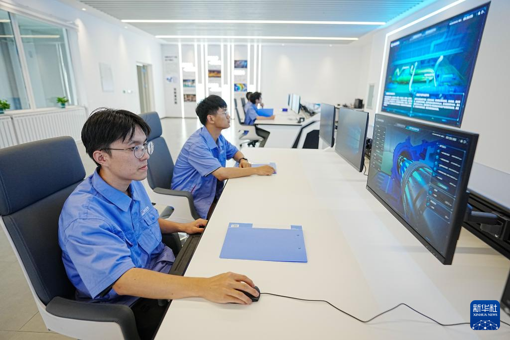 7月23日,在哈电发电设备国家工程研究中心研发基地智能化产品研发实验室,工作人员在进行测试操作。