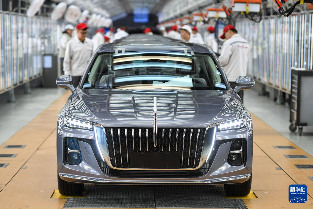 2月19日,工人在一汽红旗制造中心繁荣厂区总装车间检查车辆。