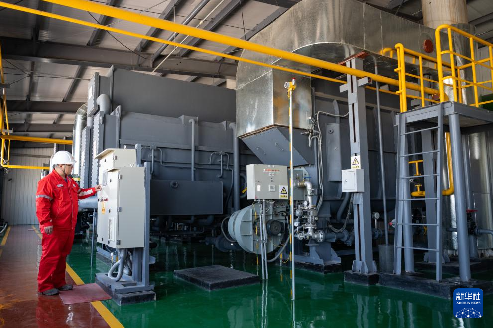 4月29日,石油工人在大庆油田喇360热泵站对设备进行巡检。