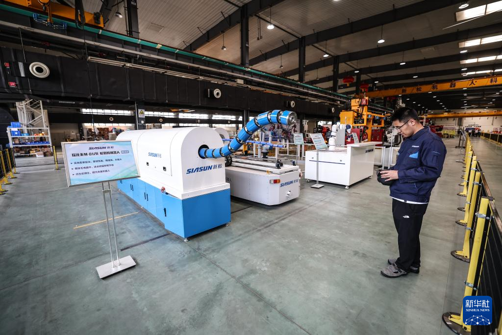 6月3日,沈阳新松机器人自动化股份有限公司的机器人研发工程师在调试点焊机器人。
