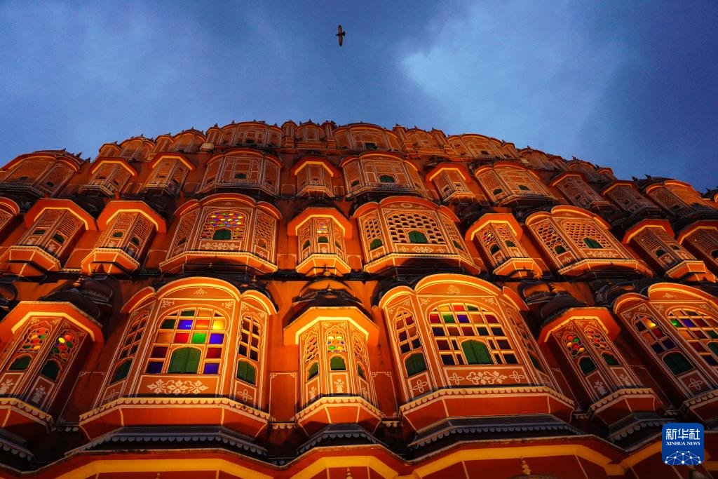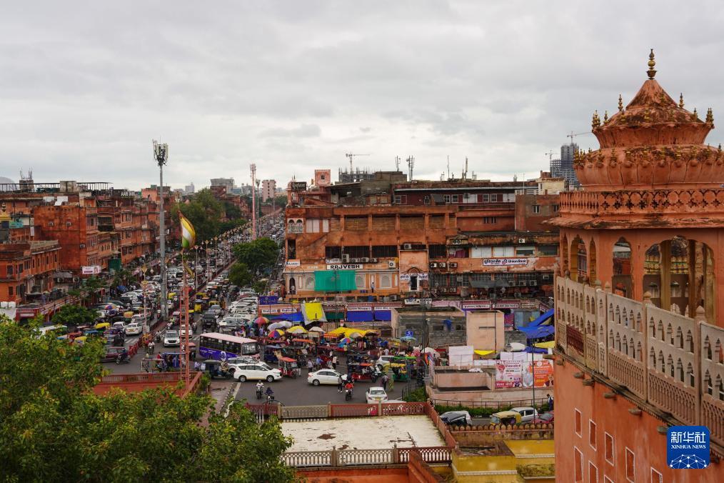 这是8月5日拍摄的印度斋浦尔“风之宫”一景。