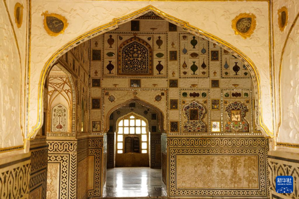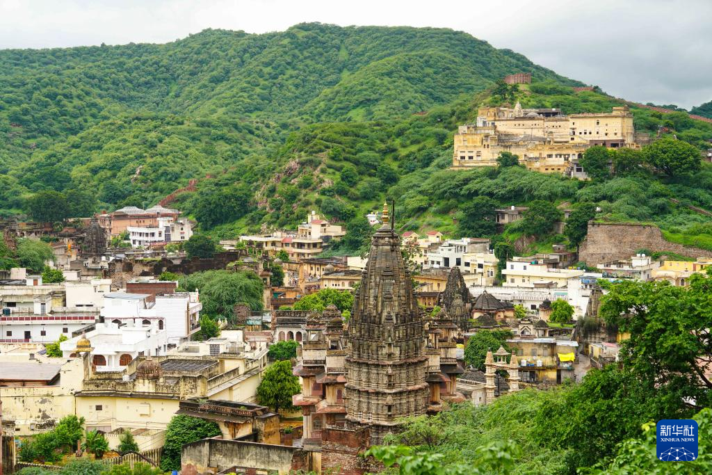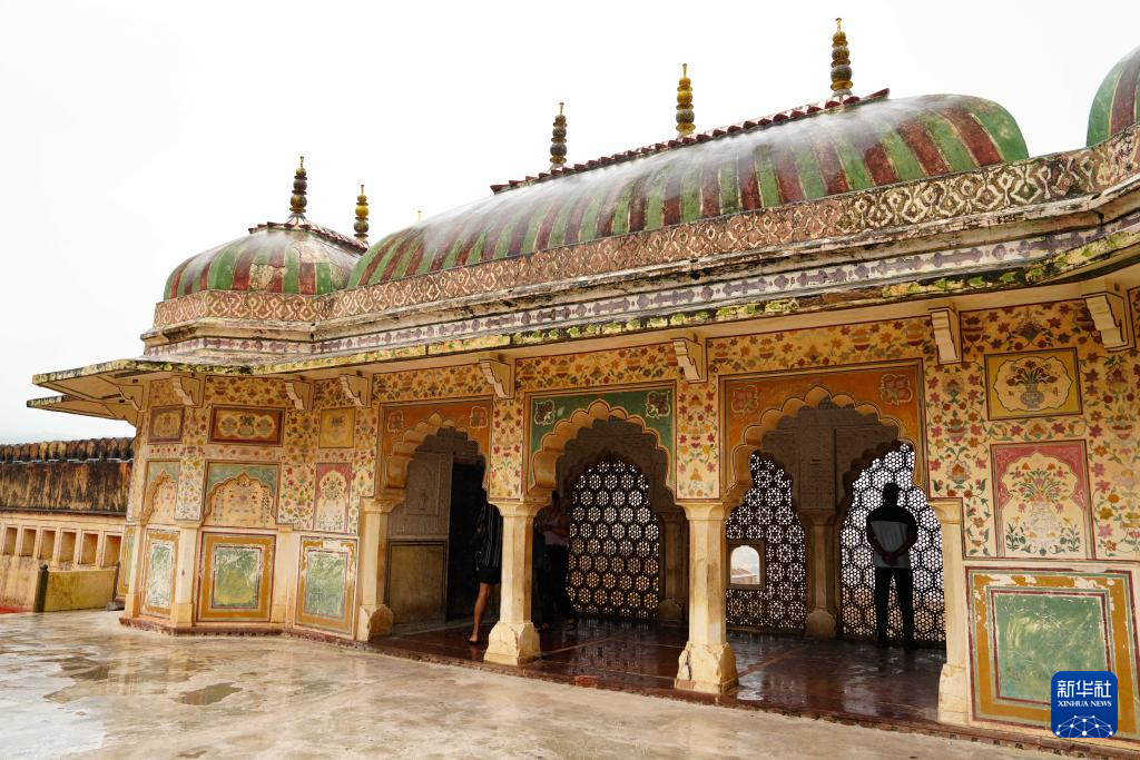 这是8月5日拍摄的印度斋浦尔“琥珀堡”一景。