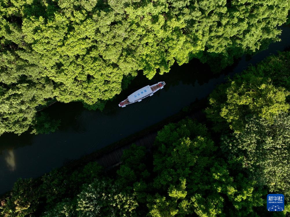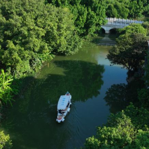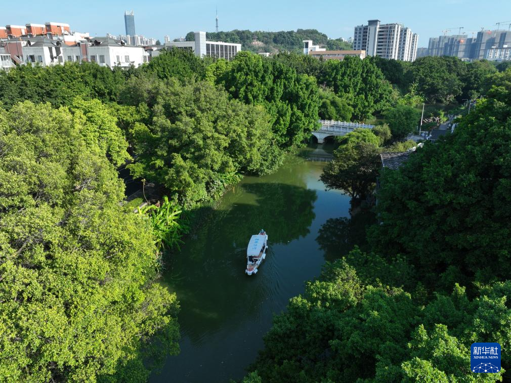 8月7日,游船在福州白马河上行驶(无人机照片)。