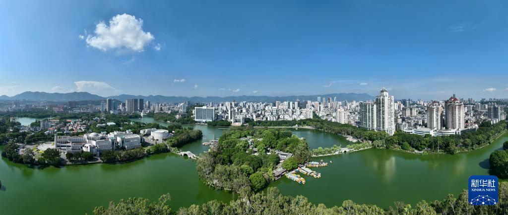 这是8月7日拍摄的福州西湖及周边城市景观(无人机全景照片)。