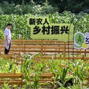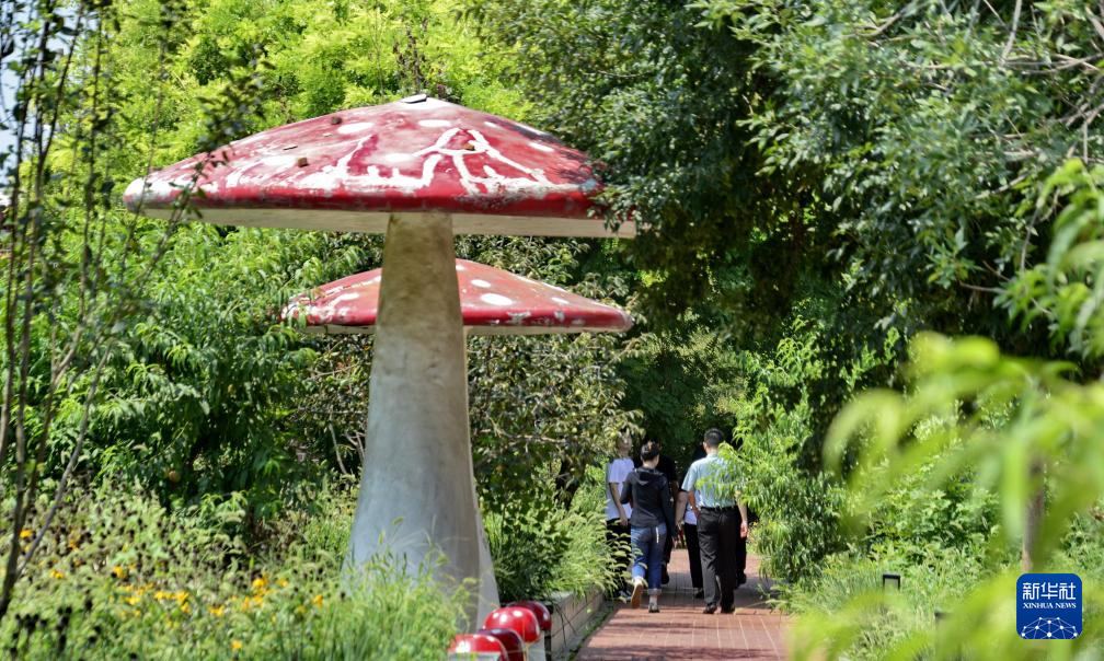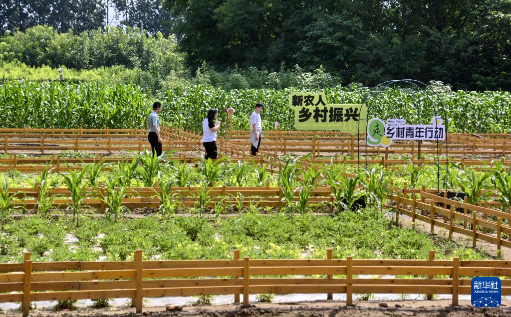 8月6日,游人在李家场村的农耕体验园参观。
