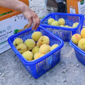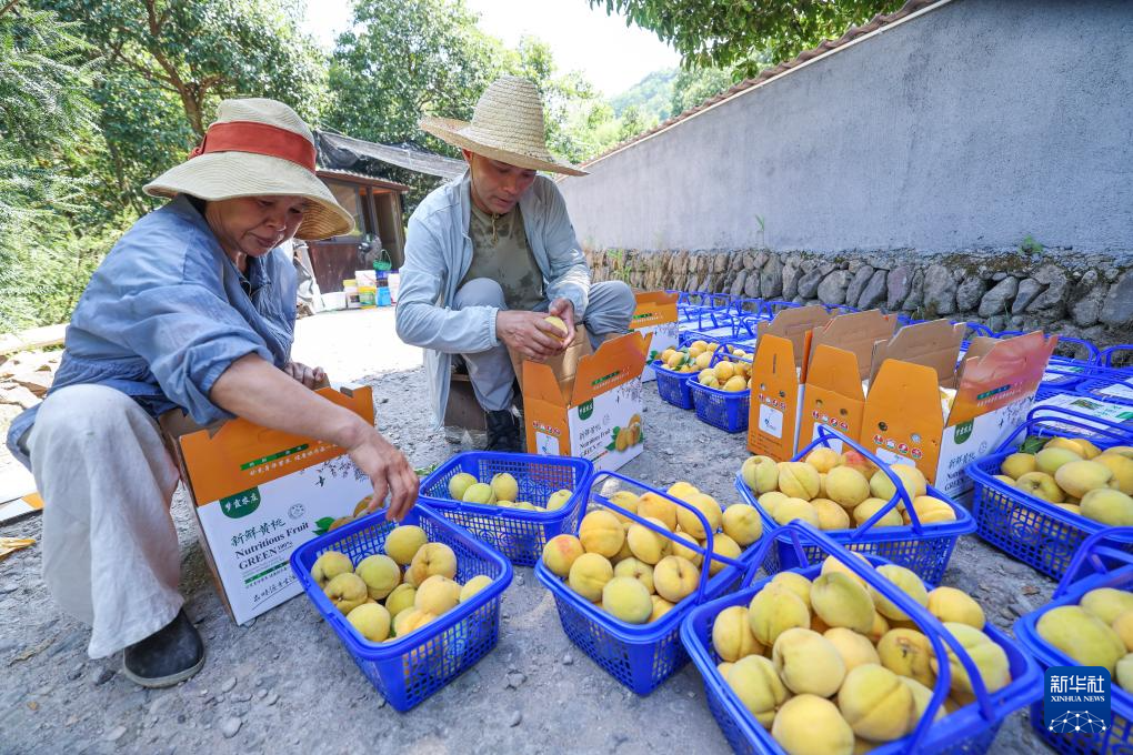 8月7日,璜山镇黄家店村的种植户在打包刚采摘下来的黄桃,准备运往市场。