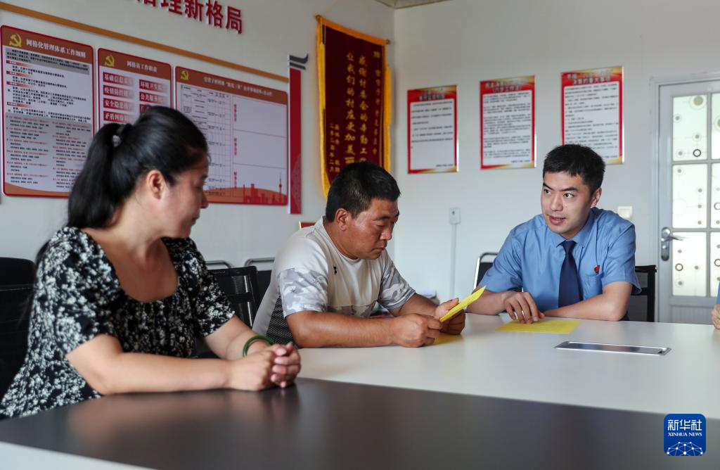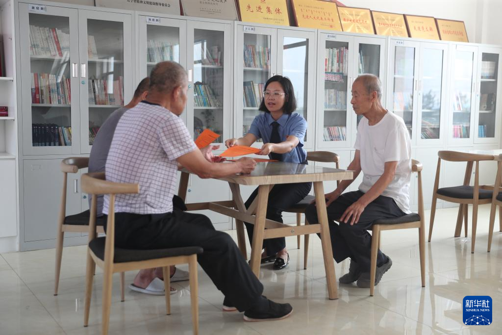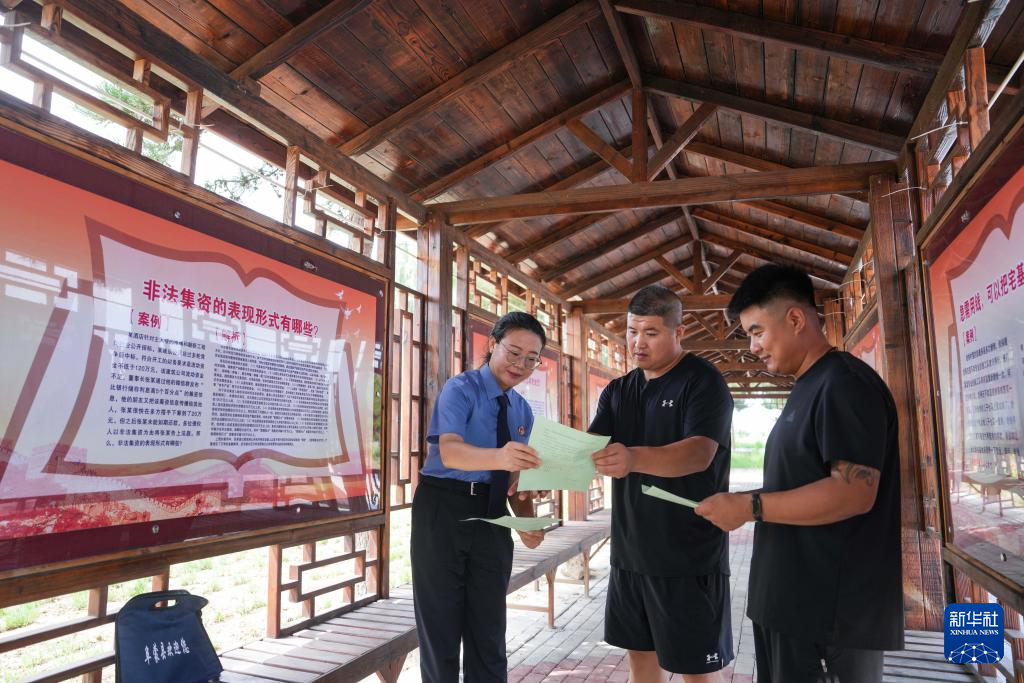 8月7日,辽宁阜新蒙古族自治县人民检察院检察人员在于寺镇官营子村向村民普及法律知识。