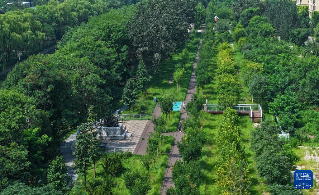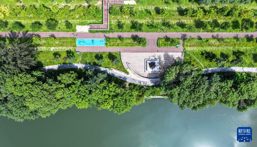8月8日拍摄的天津市城市绿道公园(无人机照片)。