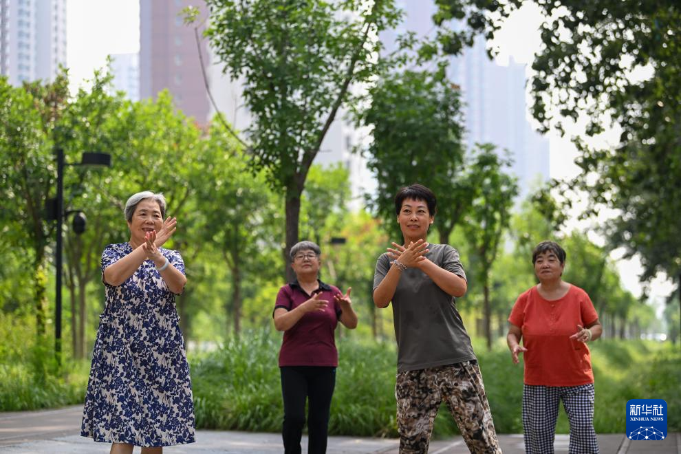 当日是我国第16个“全民健身日”,不少市民来到位于天津河西区复兴河畔的城市绿道公园健身休闲。