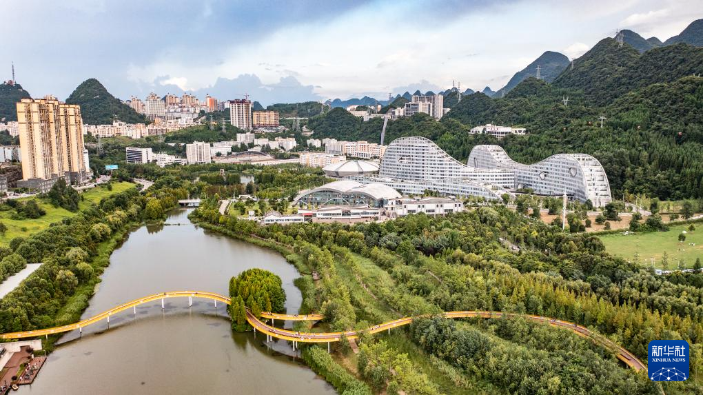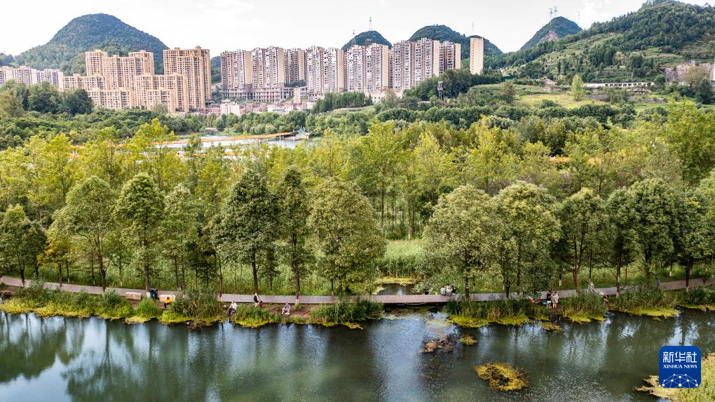 位于贵州省六盘水市钟山区的明湖国家湿地公园植被丰富,风景如画,吸引人们前来休闲游玩。