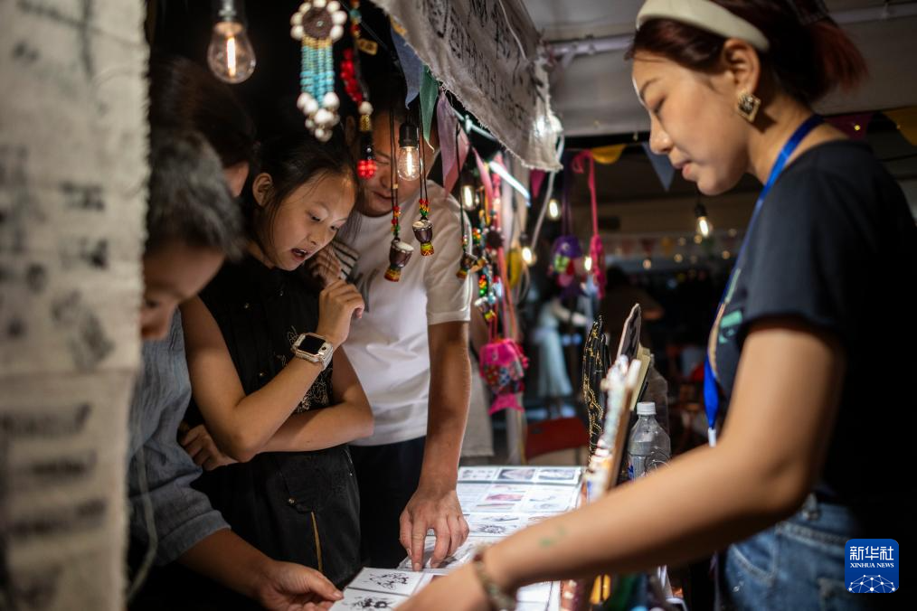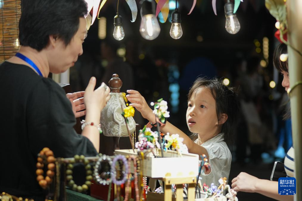8月5日,游客在神农架林区木鱼镇露天集市游玩。