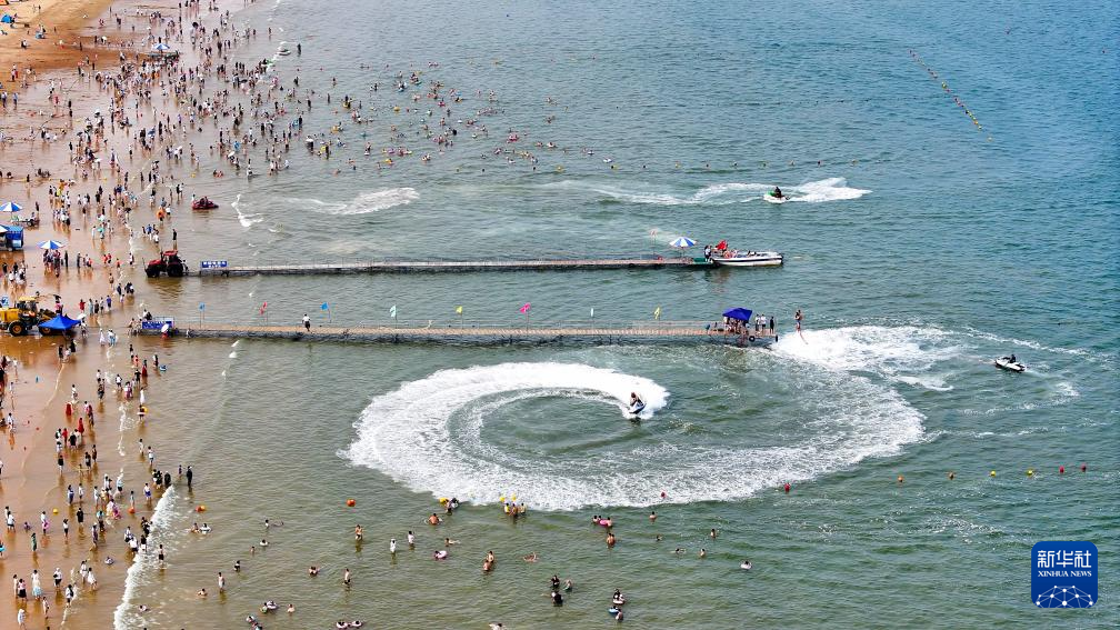眼下,位于黄海之滨的山东省日照市海滨消夏游“热”起来,碧海、蓝天、沙滩,吸引众多游客前来休闲游玩。