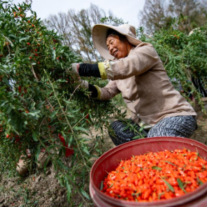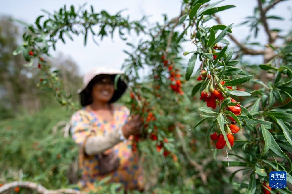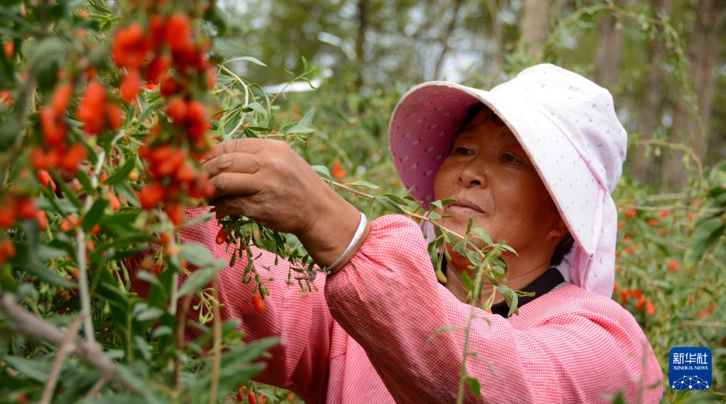 八月上旬,青海省海西蒙古族藏族自治州德令哈市的头茬枸杞进入采摘期,采摘工人们抢抓晴好天气积极采摘、晾晒。