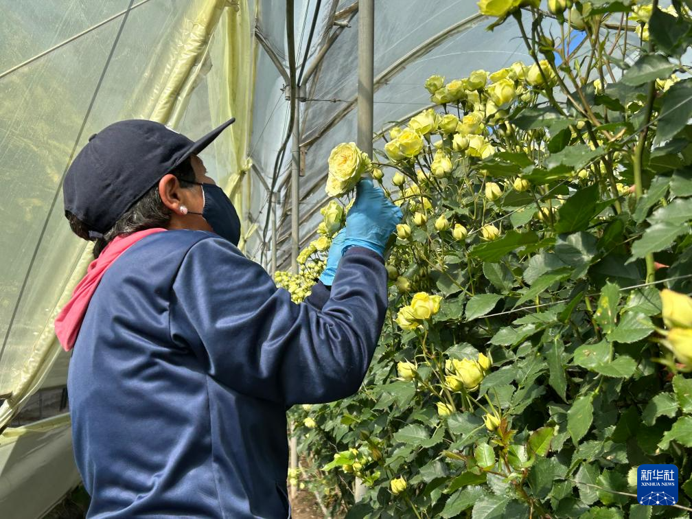 8月7日,在厄瓜多尔卡扬贝市埃米亚纳公司,工人采摘玫瑰。